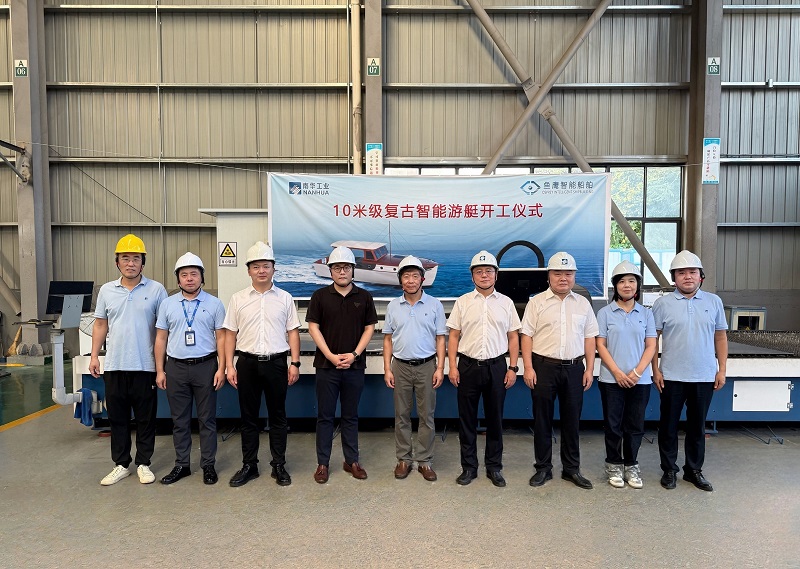 9月17日,南华工业在江夏生产基地举行“10米级复古智能游艇”项目开工仪式。中国船级社武汉分社副总经理何伟、处长朱烨、处长吴学源、验船师杨万宇一行,湖北省无人船艇制造业创新中心主任苗帅,南华工业董事长苗凤林、副总经理吴德明、黄友桥及项目核心团队共同出席了本次活动。