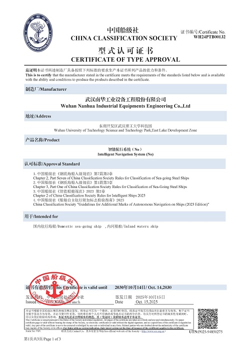 近日,公司自主研发的智能航行系统、智能语音控制器取得中国船级社(CCS)型式认可证书,标志着公司在船舶智能产品领域取得新突破。
